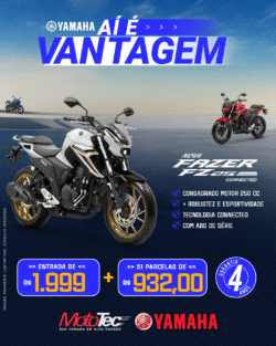 A Yamaha Fazer FZ25 Connected é a moto perfeita para quem busca desempenho, conectividade e design esportivo em um só modelo. Equipada com motor 250cc consagrado, tecnologia de ponta e ABS de série, ela entrega segurança, potência e conforto tanto para o dia a dia quanto para viagens mais longas.