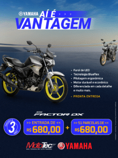 Na Mototec Yamaha, você encontra atendimento especializado, planos de financiamento acessíveis e toda a linha Yamaha com qualidade e confiança. Seja para o trabalho, estudo ou lazer, a Nova Factor DX é a parceira ideal para o seu dia a dia.